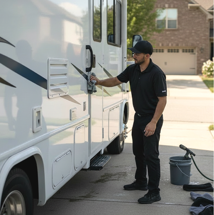 Originally built to serve RV units for travelers, our detailing service for motorized properties is equipped to clean and protect units ranging from cars, SUVs, and trucks, to RVs and Boats.